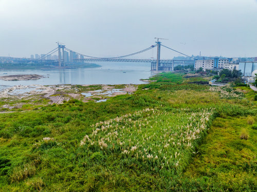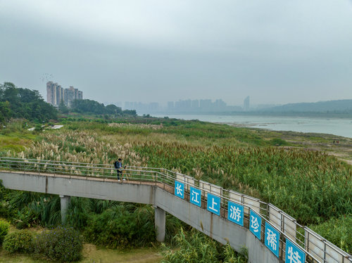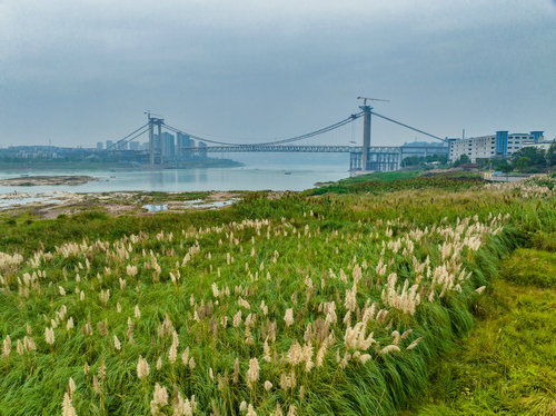 四川新闻网消息 2022年11月9日,在四川省泸州市龙马潭区老鹰坵湿地公园,一片片高大的芦苇丛在江边滩涂中随风摇荡,吸引了众多市民前来游览。