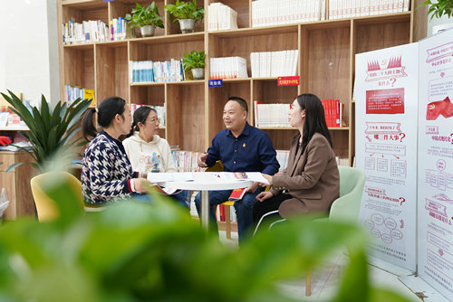 四川新闻网消息 2022年11月10日,在四川省泸州市龙马潭区鱼塘街道望山坪社区新时代文明实践站内,全省优秀共产党员周春(右二)正通过座谈分享会的形式与社区党员在一起学习党的二十大精神,讨论下一步社区治理工作。(供稿:龙马潭区融媒体中心 杨尚威 张鹏)
