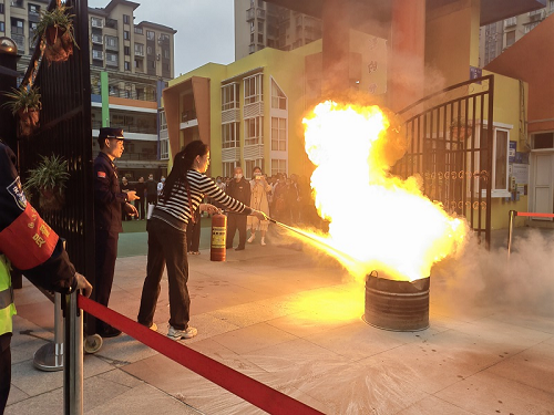 消防宣讲员与教师互动,进行消防知识宣传,讲解常用消防器材的使用方法,并现场演示灭火器的操作规程。培训后,教职工踊跃参与实操演练,掌握了消防器材的使用方法以及如何扑救初级火灾。