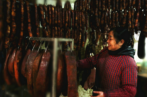 “我们加工腊肠5元/斤,除了肉外包工包料。可以做广味和川味,调料都是我们独家秘制的,看顾客喜欢啥子口味,就用啥子调料。一天的话我们能做四五百斤。”腊肉加工店老板袁明容说。
