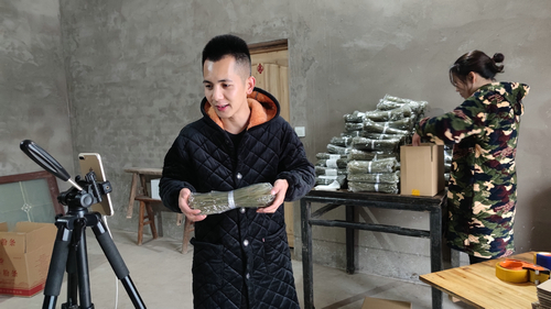 “这是老乡们自家的手工苕粉,真正的童年味道……”纳溪区上马镇云台寺村有一名网上带货的小伙儿叫明洪强。他是2019年村里第一批返乡创业的“90后”,经过几年的努力,他的抖音号粉丝上百万,通过直播带货,不仅让周边村民的土特产走出大山走进大都市,还让自已赚得盆满钵满。