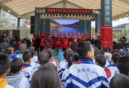 四川新闻网消息 近日,成都爱乐萨克乐团受邀到叙永县摩尼镇开展音乐交流,开展高雅艺术进基层之民族传统音乐专场表演,吸引了当地1000多名学生和群众观看。