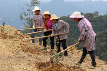 村民们忙着开荒移栽,抢抓幼苗生长关键期。皮卡车把油茶树苗拉上山,村民们接力传递搬运,挥舞锄头精整深翻土地、定点挖穴移栽,再用双手压实树苗根部泥土……
