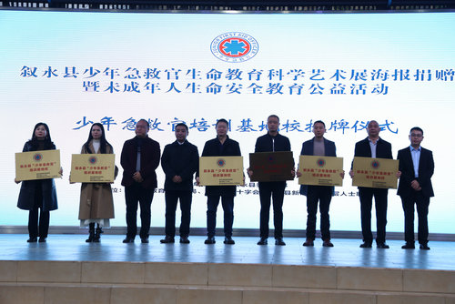 活动中,为叙永县新联会“少年急救官志愿者服务队”和少年急救官公益培训讲师团授旗。向全县251个中小学校捐赠少年急救官生命科学艺术展海报。宣布鱼凫小学、新实小、叙永二中、城郊中学、永宁中学、叙永三中等6间学校为少年急救官培训基地校并举行授牌仪式。随后,讲师团老师现场演示了心脏骤停、食物卡喉等紧急情况的急救知识和技能,并现场邀请学生上台展示学习成果。