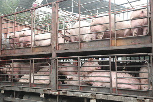 四川新闻网消息 春节将至,市场对于猪肉的需求也逐渐增大,在合江县大桥镇周德宣家庭农场内,一头头生猪经过检查、过秤、记录后,在工作人员的驱赶下通过专门通道有序装车运往各地。