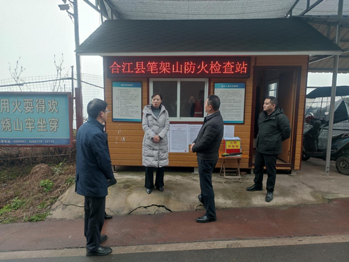 在合江县笔架山防火检查点,罗素平详细了解了卡点人员设置、进山车辆人员登记、防火政策宣传等情况。
