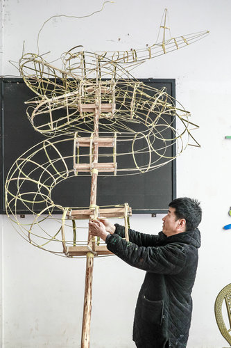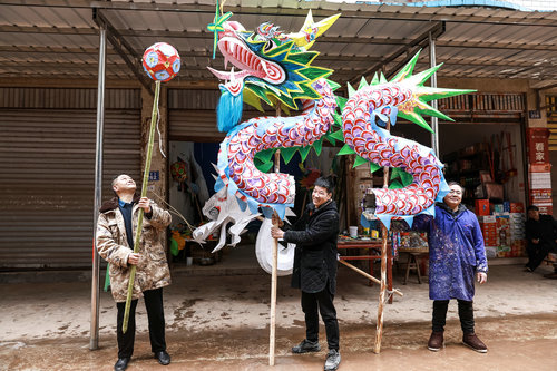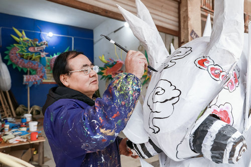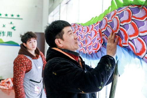 | 2024年2月1日,泸州市合江县先滩镇自怀社区,非遗龙灯传承人在赶制一批春节前需交付的龙灯订单 |