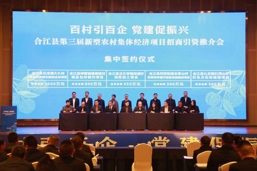 据了解,合江连续三年召开村集体经济项目招商引资推介会,深入实施“百村示范·千村共兴”计划,推动68个村81个项目签约落地,投资总额2.15亿元。培育集体经济收入10万元以上村412个,带动泸州市村级集体经济收入3.7亿元,为泸州市抓党建促乡村振兴注入了新活力,为发展新型农村集体经济探索了新路径。