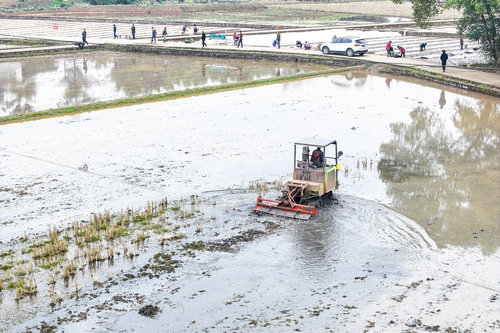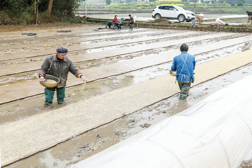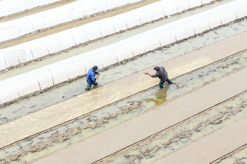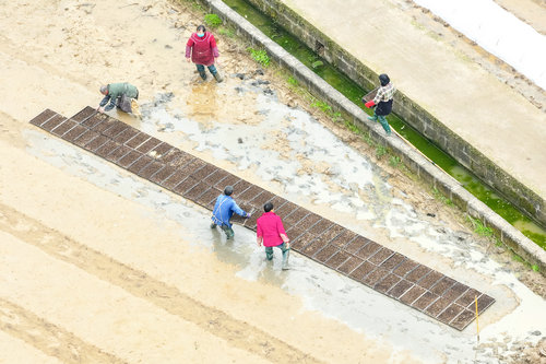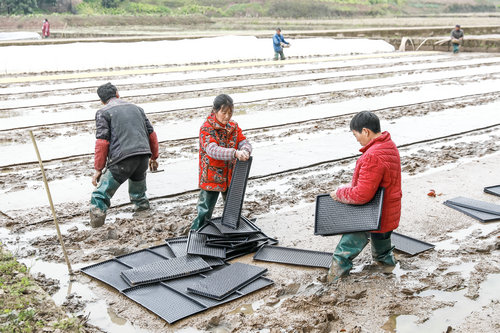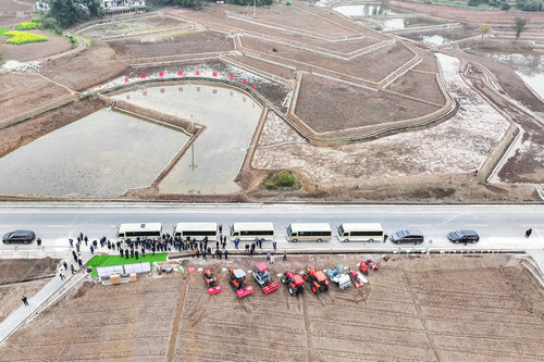 | 泸州市合江县白沙镇马鹿村,高标准农田建设现场,村民们忙着水稻育秧等春耕工作 |