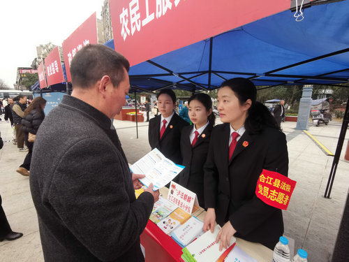 四川新闻网消息 近日,四川省合江县人民法院利用“春风行动”暨泸永江融合发展示范区现场招聘会的契机,组织“泸法麒麟”普法志愿者走进现场,设立志愿服务岗,有针对性地开展法治宣传活动,为广大求职者和招聘企业送上“法治大礼包”。
