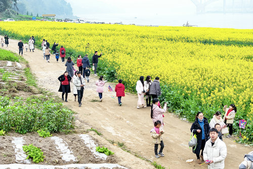 3月3日,位于长江边的泸州市合江县白米镇金宝山村油菜花开,水清岸绿,无数游人纷至沓来,徜徉其间体验春天的味道,构成了一幅幅春意盎然的和美乡村画卷。