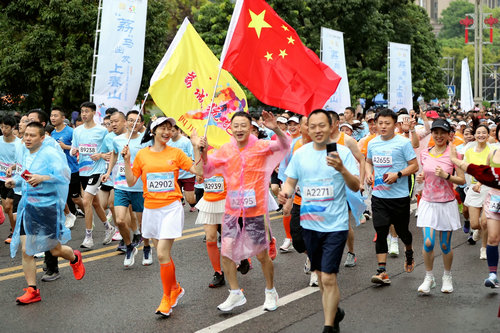 比赛现场,来自各地的参赛运动员们有序进行开跑前的热身活动。随着开跑号令响起,选手们热力出发,感受着合江的城市脉动,用双脚探寻千年荔城的魅力。沿途市民在赛道旁为他们加油鼓劲,不绝的呐喊声与选手们的脚步声,交融出动人的马拉松旋律。