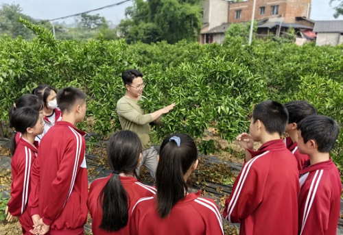 这群特殊的学徒是来自尧坝镇中学初二年级的学生,他们来基地是开展劳动实践和科技体验活动的,为什么要疏果?疏果操作要掌握一些什么技术?李杰一样样地跟同学们科普着,耐心又细致,他不仅讲技术,也讲自己的创业故事,赢得了同学们的阵阵掌声。