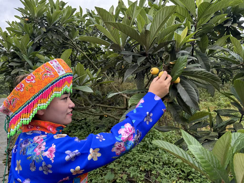 在泸州市古蔺县大寨苗族乡,一簇簇色泽浅黄、果皮嫩滑的枇杷挂满枝头。一大早,陶桂芬就提着篮子上山采摘枇杷。
