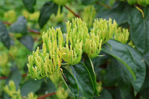 眼下,泸州市古蔺县石宝镇石口村乡贤产业园区山银花正式进入采摘季,漫山遍野的花朵,枝繁叶茂一簇簇,饱满的花朵挂满枝头,微风拂过,散发着阵阵清香。