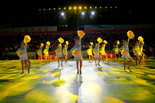 开幕式上,国旗方阵、会旗方阵、裁判员队伍方阵、12个乡镇12支代表队方阵迈着铿锵有力的步伐依次入场,富有地方特色的“农副产品展示队”也在村民、游客热情的掌声和呐喊声中闪亮登场。整场开幕式以“共创天府旅游名县·共谱乡村振兴新篇”为主题主线,共分为“禾美皇华欢迎你”“禾美乡村展风采”“蔺州粮仓谱新篇”三个篇章。现场演出形式多样、精彩纷呈,真实地展现了山区乡村的绿水青山、人文情怀、奋进姿态、和美画卷。