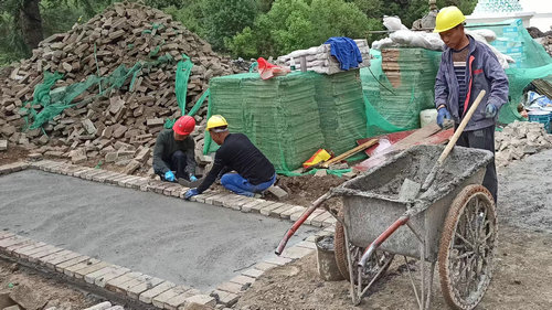 在乡城县热打镇农文旅融合发展示范片建设项目建设现场,60余位工人正奋战,铺设步游道、改造民宿等工作正在有序推进。来自泸县的援建干部黄显民正在督促项目施工进度。