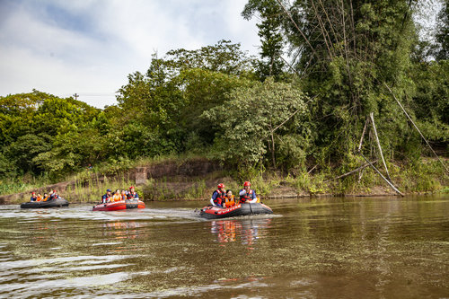 四川新闻网消息 7月24日,结合当前国内自然灾害频发的形势,泸县国资系统地灾抗洪抢险后勤保障实战演练在泸县玉蟾街道办城西张坳区域举行。本次演练是由泸县财政局主办,泸县经济发展投资开发有限公司承办,泸县经开区管理委员会、泸县汇兴投资集团有限公司、泸县产业发展投资有限公司、泸州飞豹救援队协办。演练内容分别为会商研判决策、人员物资入场、水域救援、救助落水群众、灾民转移安置、筑堤堵泄、排险除危等五个科目。