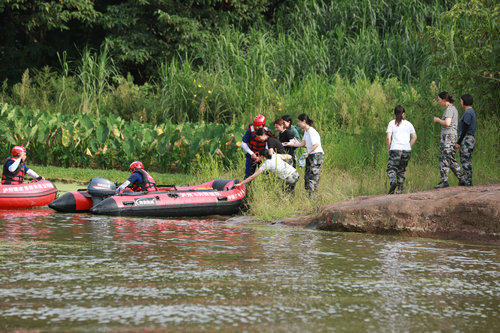 “有个别群众涉水自救,被困湖中,危及生命,亟待救援。 ”应急救援队随即派出一艘救援船迅速出发,接近落水者使用“活饵救援”技术,将落水者救起,送往上岸边安全区,接应人员及时扶上岸安抚安置。