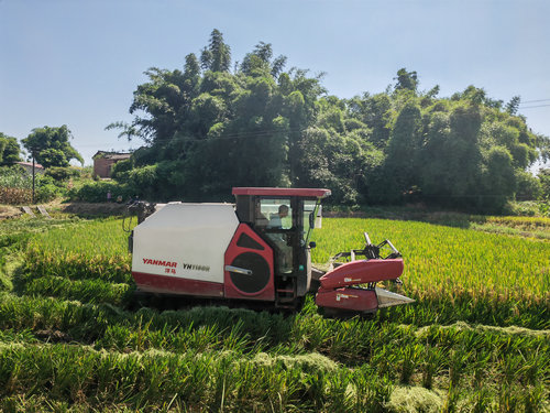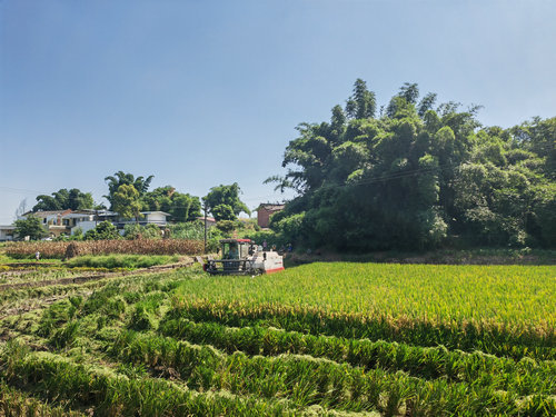 喜看稻菽千重浪,又是一年丰收时。走进位于泸县方洞镇的粟喻粮油专合社,金灿灿的水稻压弯枝头、穗粒饱满。收割机来回穿梭在田间,随着齿轮转动,株株穗大粒密的水稻被收割、脱粒后直接装车,转眼工夫,大面积水稻收割工作已然完成。采用机械化收割,不仅可以快速收割水稻,而且被机器粉碎的稻杆还可以直接还田,增加土壤的肥力。
