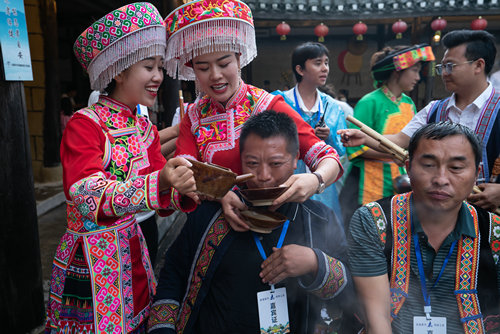 鼓声震天,芦笙悠扬。开幕式上,融入原生态、传统性和民俗特色为一体的苗族歌舞《干一杯》《姐妹梳妆》《云上山水》《在这等你》等精彩绝伦的节目轮番上演,不时引来观众席上的阵阵掌声,让广大游客享受一场苗家民族文化盛宴。