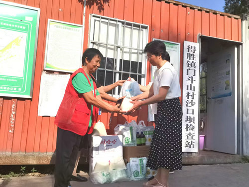在泸县得胜镇门斗山村森林防火检查站,泸县政协副主席、九三学社泸县基层委主委薛颖将精心准备的包含矿泉水、白糖、防暑药品等消暑物资的“清凉大礼包”发放到护林值守人员手中,并叮嘱他们要增强自我防护意识,做好防暑降温措施,同时要认真做好卡口来往车辆的排查登记,确保在连日高温天气下高效完成防火护林任务,守护好一方平安。