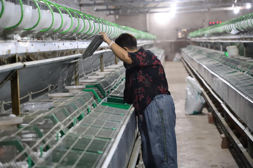 走进泸县天兴镇牧苑家庭农场,只见室内一排排兔笼整齐排列着,一只只肥壮的肉兔耳朵和鼻子不停耸动,分外灵动。工作人员一边忙碌地给兔子添加饲料,一边仔细检查它们的生长情况,笼内的小白兔团抱在一起,嗷嗷待哺,憨态可掬。