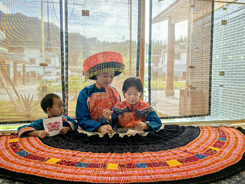 苗绣是苗族刺绣的简称,是苗族民间传承的刺绣技艺,也是中国苗族文化的重要组成部分,被称为穿在身上的“无字史书”。苗绣色彩鲜艳,配色大胆而灵活,强烈的对比之中形成一种古朴又五彩斑斓的效果。苗绣更是一种具有民族特色的手工艺品,在乡村振兴的今天,已成为苗族人民增收致富的重要途径之一。
