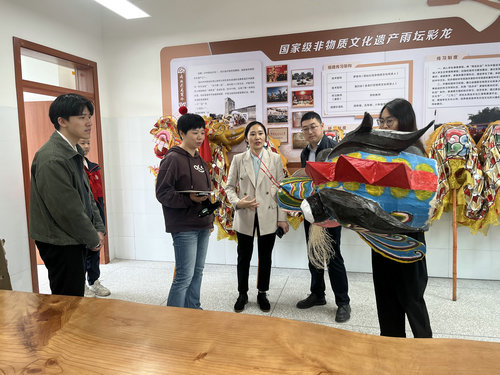 走进传习所,大家被浓厚的龙舞文化氛围所环绕。其中,最吸引众人目光的当属由雨坛彩龙传承人亲手制作的龙头。大家纷纷围聚上前,仔细端详起来。只见那龙头造型精美,每一处细节都雕琢得恰到好处,龙须飘逸,活灵活现的模样让人不禁赞叹:“龙眼炯炯有神,还能动,做得太逼真了!”