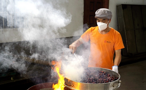 “炒制糊辣椒的时间非常讲究,少一刻便难以出香,多一会儿则易炒糊发涩。”在叙永县龙凤镇大竹村,叙永县辣佳庄食品有限公司的工人贾发科用传统方法手工炒制糊辣椒面。红色干辣椒借着火焰来回翻炒,待到辣椒外形渐黑,一缕焦香沁入鼻腔时,将糊辣椒取出置入石盅,取一根一人高的木杵上下舂捣,将糊辣椒碾碎,手工柴火烧糊辣椒面就制作完成了。2016年,龙凤兴隆手工柴火烧糊辣椒面传统制作技艺被列入叙永县第四批非物质文化遗产项目。