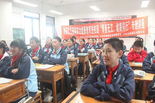 在棉花坡中学、泸天化小学等校点,永宁街道和纳溪区疾控中心等组成的宣讲团举行了主题为“青春无艾·健康同行”专题知识讲座。讲座中,采用学生易于理解接受和师生互动的方式,从艾滋病流行趋势、传播途径、暴露前预防和国家政策方面为学生们做了详细讲解,用鲜活的案例、详实的数据以及生动的图片,让同学们深刻地认识和了解艾滋病的危害、防治艾滋病的具体措施。通过本次活动,同学们对艾滋病有了新的认识,深刻了解了艾滋病的危害以及有效防治艾滋病的具体措施,树立了正确观念,增强了艾滋病防护和自我保护意识,促使同学们强化树牢“每个人是自己健康第一责任人”的理念,做预防艾滋病的坚强捍卫者。