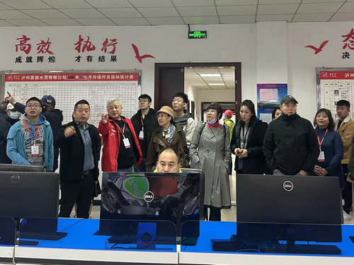 在泸州赛德水泥公司,通过参观生产指挥中控室、听取企业负责人的介绍,详细了解企业的规划、生产经营和管理情况。