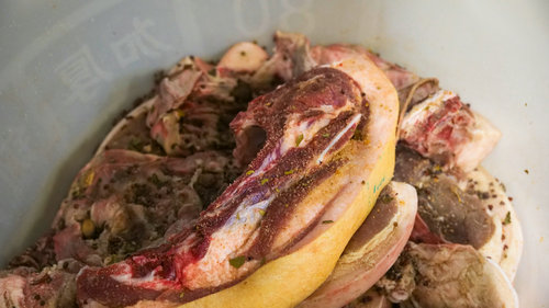 张波的母亲介绍,制作香肠的关键在于选材和调味。他们一般选择猪的前腿夹子肉,肥瘦比例为七分瘦三分肥,切成五六厘米长的肉条后,抹上适量的白糖、盐巴、花椒,并加入高度白酒来提升风味。对于喜欢辣味的食客,还可以加入辣椒粉。