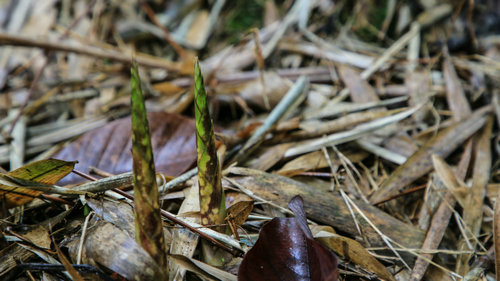 新鲜毛笋当采30公分以内最佳,黄荆老林万亩竹林葱郁绵延,宛如翠绿海洋,山高路远间,鲜笋日长夜大,需及时采收销售。于是,晨曦初破晓,竹农们便迎着霜雾,踏上“打笋”旅途,跋山涉水,采撷这份鲜美山珍。竹林高低落差显著,为缩减运输成本并提升效率,村民们巧妙利用滑索,将一颗颗鲜嫩欲滴的鲜笋打包成捆,自山巅轻盈滑至山脚,青山绿水间,滑索运笋,绘就了黄荆老林独特的采笋风情。