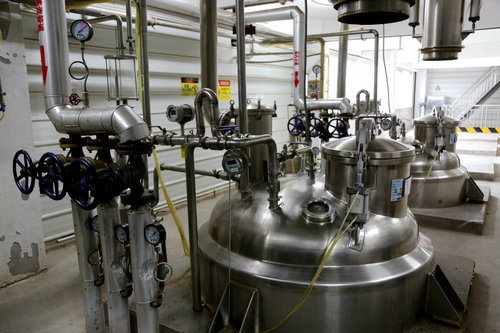 工人们拉着推车,将黄芪饮片放入两层楼高的多功能提取罐。浓缩好的黄芪浸膏,正通过这个机器抽取至醇沉工序加工。经过醇沉后的黄芪浓缩液,将制成黄芪片销往全国各地。