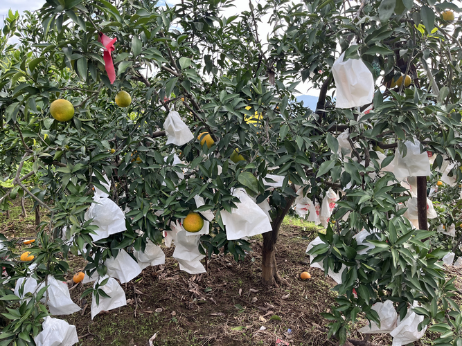 据了解,果园里种植了500多亩的柑橘,产量达到了8万多斤,每年9月中旬爱媛就开始成熟,一直可以卖到过年,这些柑橘种类丰富,有爱媛、耙耙柑、双红、砂糖橘,放眼一片绿海间,套着一只只白色的袋子,剥开袋子,里面的柑橘像一个个金灿灿的“小灯笼”,散发出诱人的香气。