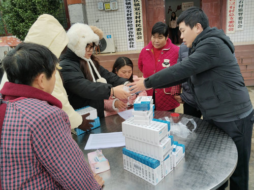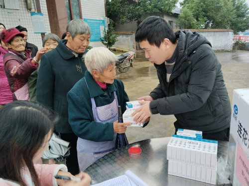 “我们老年人腿脚不方便,也不会用智能手机,家里一点药都没准备,今天能领到这些感冒退烧药,太感谢了。”村民向能才在收到发放的药品后说道。