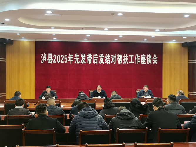 1月15日,泸县召开2025年先发带后发结对帮扶工作座谈会,县委书记李仁军出席会议并讲话,县委常委、县政府党组成员、统战部部长、总工会主席王先奎主持会议,副县长、挂职乡城县委常委、副县长郭建,县级有关部门、第七批援藏工作队队员参加会议。