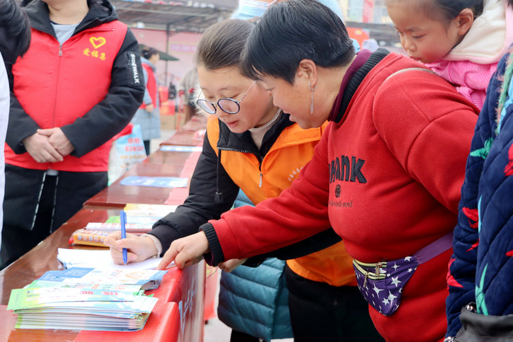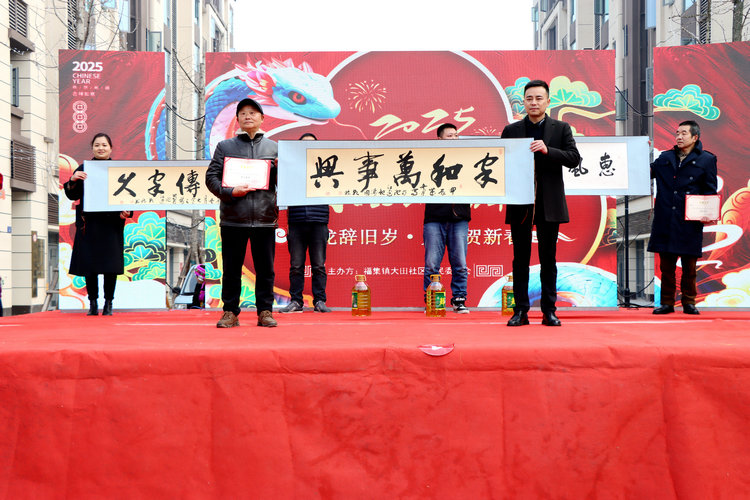 活动当天,福集镇天府百姓大舞台被装饰得喜气洋洋,舞台背景上“祥龙辞旧岁,灵蛇贺新春”的标语格外醒目,寓意着新的一年将带来吉祥与希望。活动现场设置了义诊、免费写春联等各种志愿服务活动,向现场群众普及农技、法治、全民国防教育、反诈、禁毒等知识。同时还在场地外围设置了年货集市供老乡们购置年货。