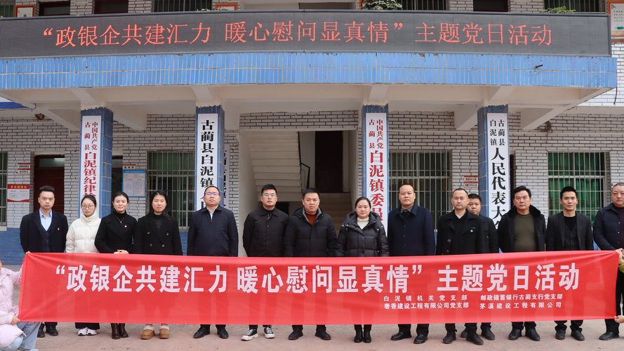 新春将至,岁寒情真。为积极引导新的社会阶层人士履行社会责任,激发统战正能量,让困难家庭能够过上一个温馨、祥和的春节。近日,白泥镇党委、政府联合泸州临港投资集团有限公司、古蔺县邮政储蓄银行古蔺支行党支部、奢香建设工程有限公司党支部和泸州市茅溪建设工程有限公司等新的社会阶层人士一起,共同开展“政银企共建汇力,暖心慰问显真情”春节暖心慰问活动。