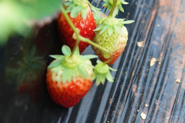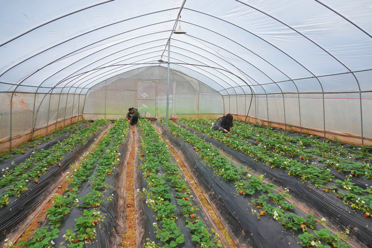 2月16日,顺着甜蜜的草莓香味,走进金山村草莓采摘园,掀起厚重的门帘进去,一股湿润的热气夹着草莓的香甜扑面而来,一垄垄草莓整齐地排列着,一颗颗红彤彤、形状饱满的草莓在绿油油的叶子中半隐半现,四溢的果香,令人垂涎欲滴。