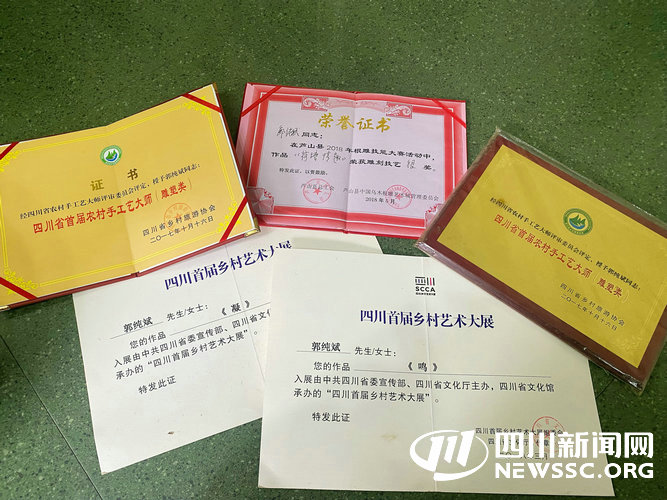“传统手工艺要创新,更要传播、传承。”郭纯斌深知技艺延续的重要性,他积极参加展览、比赛,不仅是为了展示自己的作品,更是希望通过这些机会将传统根雕技艺传递出去,他的作品《鸣》与《凝》曾入选四川首届乡村艺术大展。同时,郭纯斌在合江县特殊教育学校任教职业技术教育课程,教授学生木雕、石刻和陶艺,为学生打开艺术大门,不少学生毕业后就职于赤水木雕厂,延续着这项传统技艺。