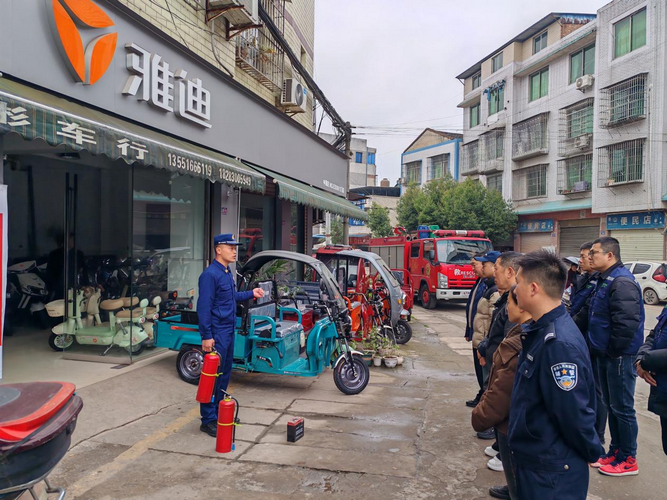 为强化辖区(村)居民的电动车消防安全意识,提升其电动车火灾应对能力。近日,天兴镇联合、消防队、派出所等部门共同开展电动自行车消防演练,以实际行动筑牢社区安全“防火墙”。